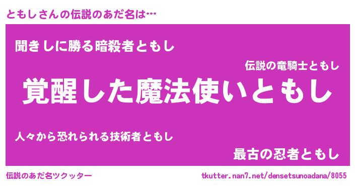 | ヒーロー風カッコイイあだ名 | 『炎刃騎士トモ』『ネオトモシ』 |