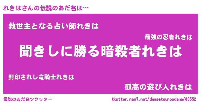 | 男性向けラノベタイトル風あだ名 | 『れきはという概念が存在しない退屈な世界 』 |