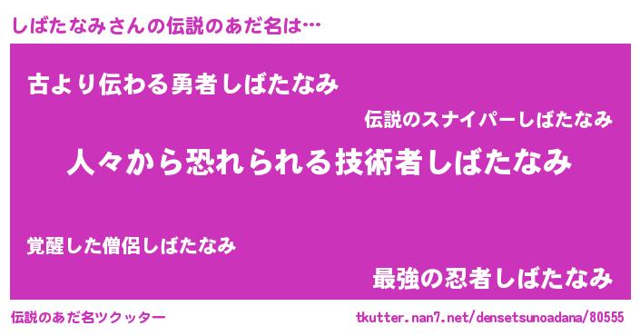 | 意味不明あだ名 | 『住所不定無職しばたなみ(12歳)』 |