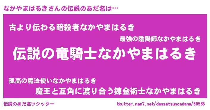 | 女子向けラノベタイトル風あだ名 | 『(仮)なかやまはるきのやんごとなき事情』 |