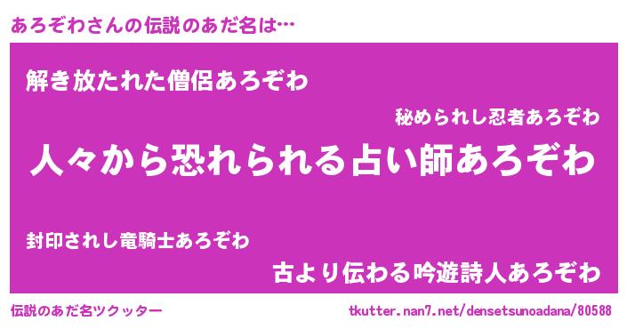 | ヒーロー風カッコイイあだ名 | 『正義の使者あろぞわ』『仮面アロダー』 |