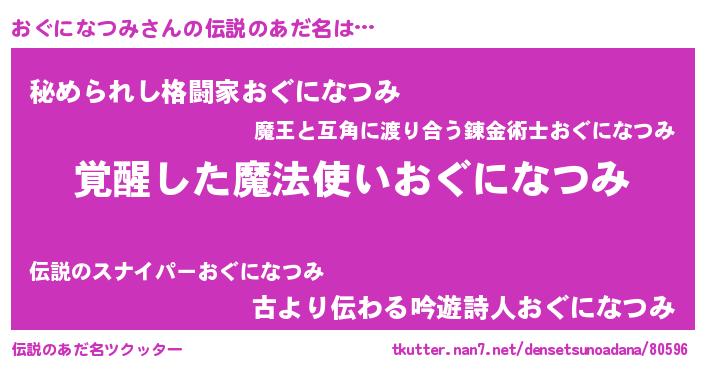 | 意味不明あだ名 | 『とにかく怪しいおぐになつみ』 |