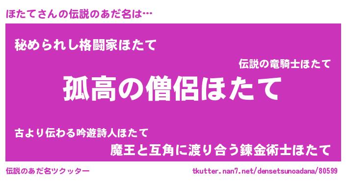| 意味不明あだ名 | 『とにかく怪しいほたて』『自称ほたて』 |