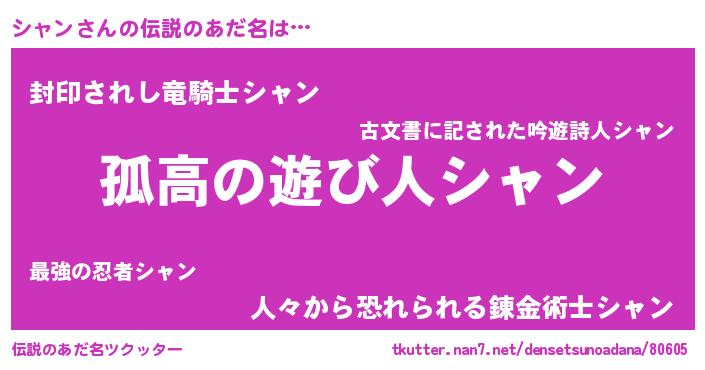 | ヒーロー風カッコイイあだ名 | 『暗黒騎士シャ』『スーパーシャン』 |