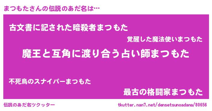 | ヒーロー風カッコイイあだ名 | 『愛の使者まつもた』『最強戦士マツモタ』 |