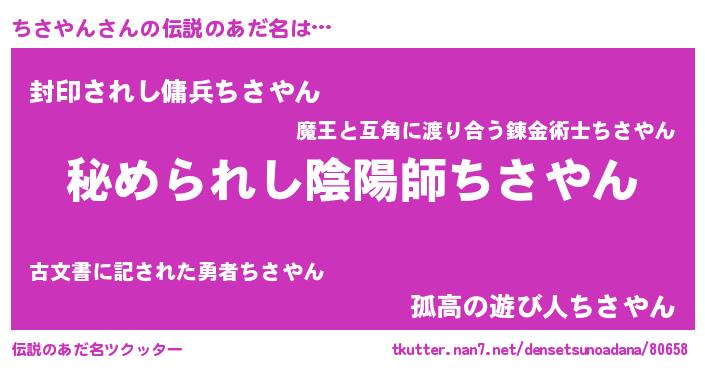 | 男性向けラノベタイトル風あだ名 | 『やはりちさやんの青春ラブコメはまちがっている 』 |