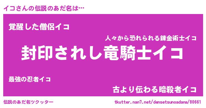 | ポケモン風あだ名 | 『イコゴンZ』『イコチュウ』『ヒイコ』 |