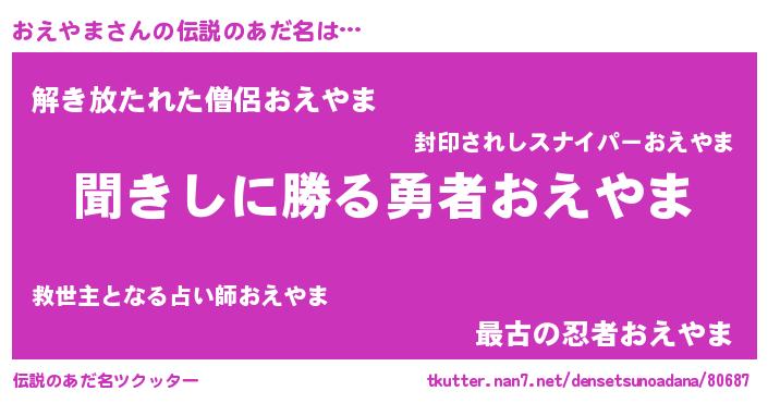 | 意味不明あだ名 | 『永久保存おえやま』『自称おえやま』 |