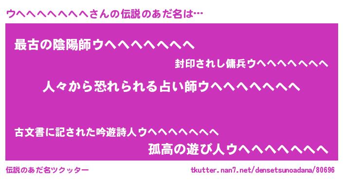 | ピコ太郎風あだ名 | 『ウウ太郎』『ピウ六郎』『ウヘ十郎』 |