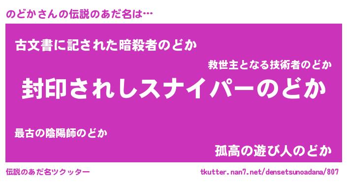 | 男性向けラノベタイトル風あだ名 | 『この素晴らしい世界にのどかを!』 |