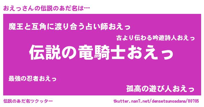 | 胡散臭い通販商品みたいなあだ名 | 『必ず成功するブレスレット…その名も「おえっ」』 |