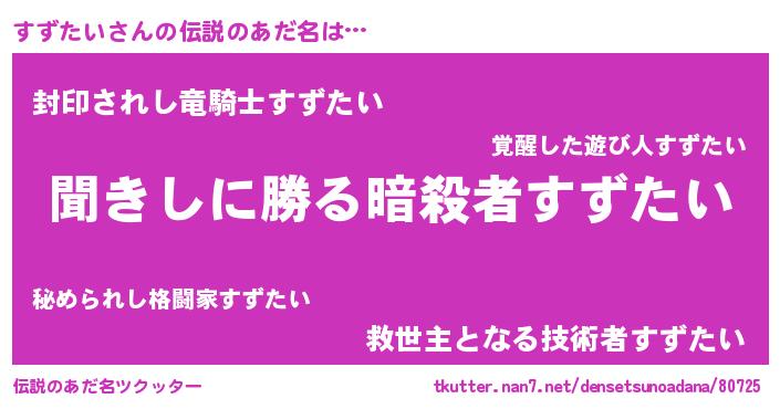 | 男性向けラノベタイトル風あだ名 | 『すずたいという概念が存在しない退屈な世界 』 |