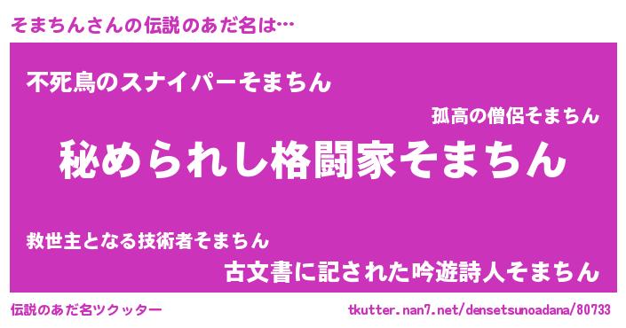 | ヒーロー風カッコイイあだ名 | 『ウルトラそまちんマン』『ネオソマチン』 |