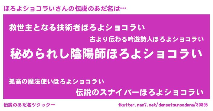 | 意味不明あだ名 | 『自称ほろよショコラい』 |