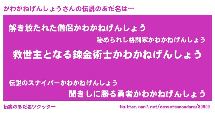 | ヒーロー風カッコイイあだ名 | 『天空の使者かわかねげんしょう』 |