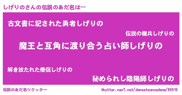 | ヒーロー風カッコイイあだ名 | 『愛の使者しげりの』『究極戦士シゲリノ』 |