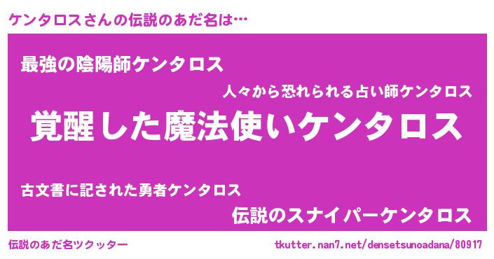 | ヒーロー風カッコイイあだ名 | 『天弓騎士ケン』『究極戦士ケンタロス』 |