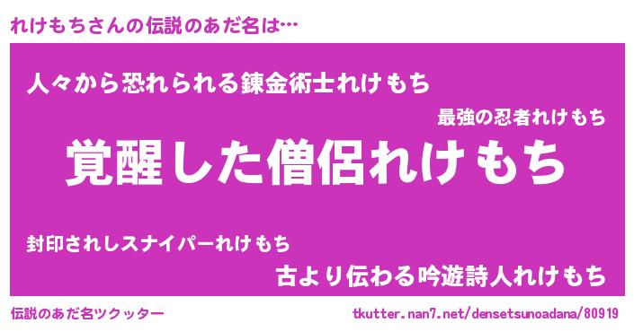 | ヒーロー風カッコイイあだ名 | 『幻影騎士レケ』『慈愛の使者れけもち』 |