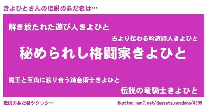 | ファンタジー風あだ名 | 『ゼキヨトゥ』『エターナルキヨヒトー』 |