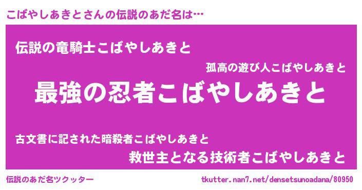 | ヒーロー風カッコイイあだ名 | 『究極戦士コバヤシアキト』 |