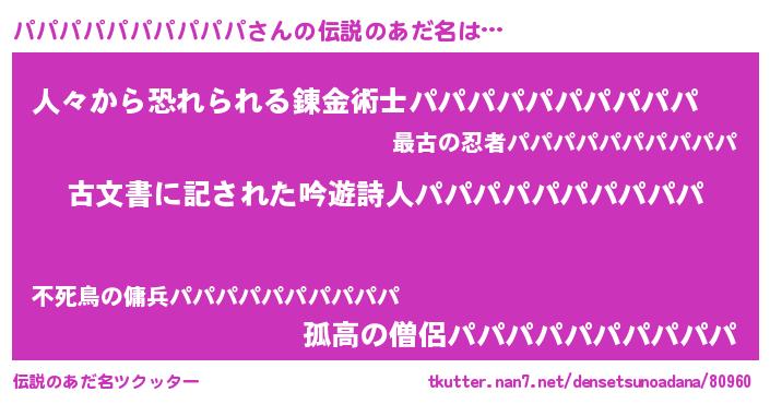| 意味不明あだ名 | 『住所不定無職パパパパパパパパパパ(4歳)』 |