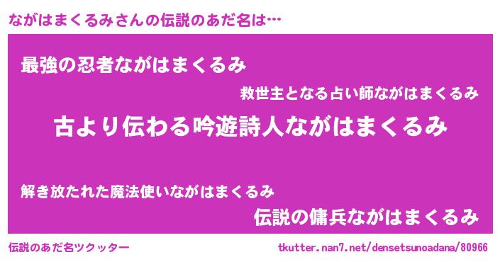 | 意味不明あだ名 | 『永久保存ながはまくるみ』 |