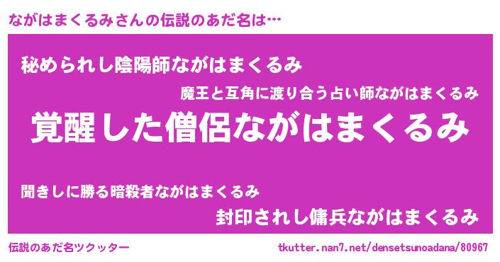 | 意味不明あだ名 | 『とにかく怪しいながはまくるみ』 |