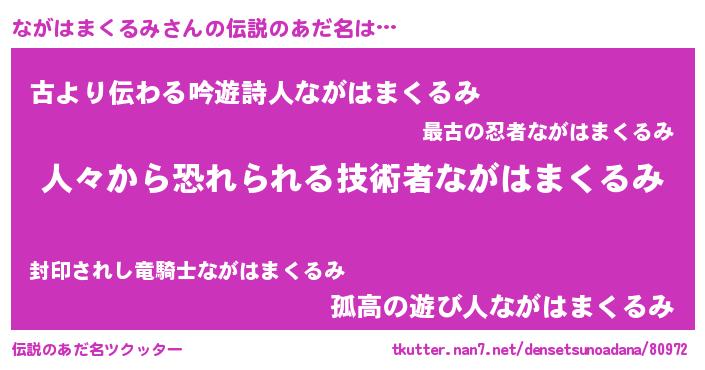 | ヒーロー風カッコイイあだ名 | 『仮面ナガダー』『ネオナガハマクルミ』 |