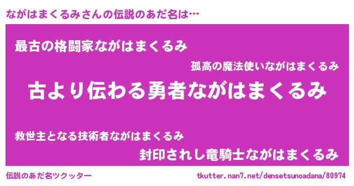 | 意味不明あだ名 | 『自称ながはまくるみ』 |