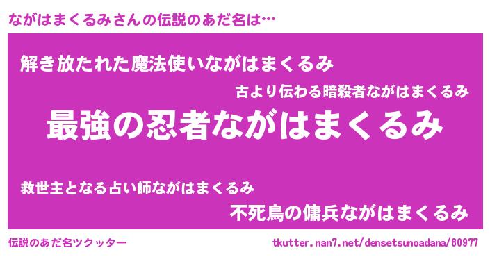 | 欧米人風あだ名 | 『ながはまくるみクリステル』 |