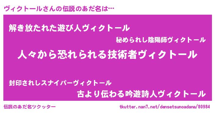 | ヘコむあだ名 | 『ヴィお』『ヴィクトール(笑)』 |