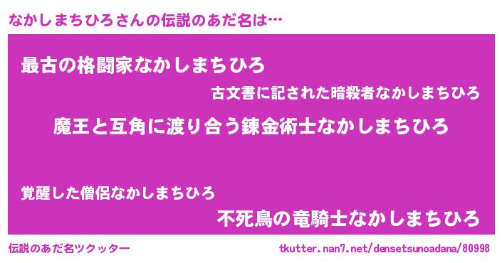 | 胡散臭い通販商品みたいなあだ名 | 『テレビで話題の冬虫夏草…その名も「なかしまちひろ」』 |