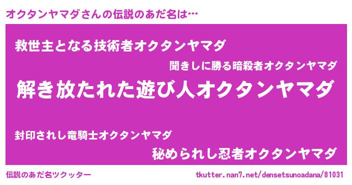 | 意味不明あだ名 | 『自称オクタンヤマダ』 |