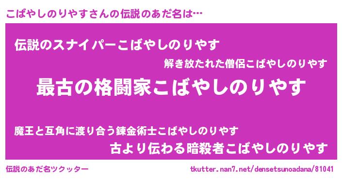 | 料理風あだ名 | 『こばやしのりやすごはん』 |