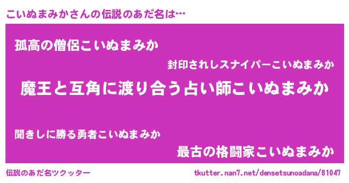 | ヒーロー風カッコイイあだ名 | 『サイバー戦士コイヌマミカ』 |