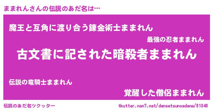 | 意味不明あだ名 | 『住所不定無職ままれん(43歳)』 |