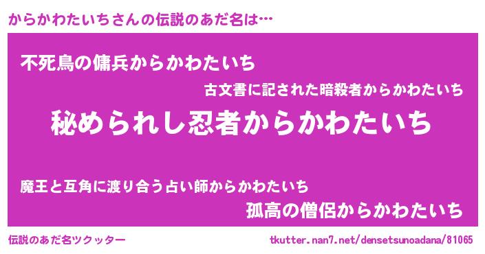 | 意味不明あだ名 | 『からかわたいちフォーエバー』 |