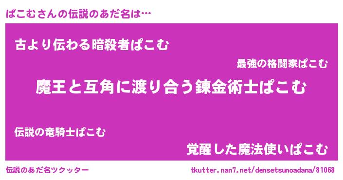 | 男性向けラノベタイトル風あだ名 | 『この素晴らしい世界にぱこむを!』 |