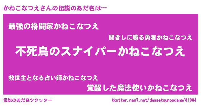 | 女子向けラノベタイトル風あだ名 | 『かねこなつえ姫と円卓の騎士』 |