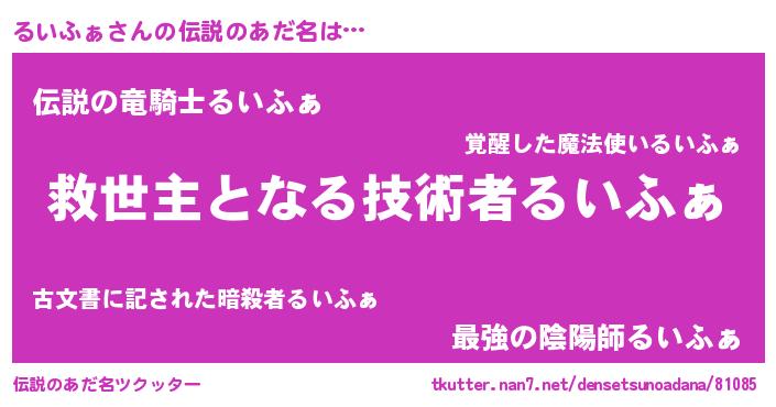 ヒーロー風カッコイイあだ名 | 『慈愛の使者るいふぁ』『天弓騎士ルイ』 |