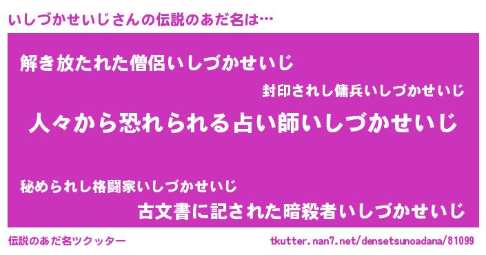 | 女子向けラノベタイトル風あだ名 | 『いしづかせいじなんてお断りですっ。』 |