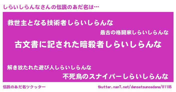 | 欧米人風あだ名 | 『しらいしらんな・ステッグマイヤー』 |