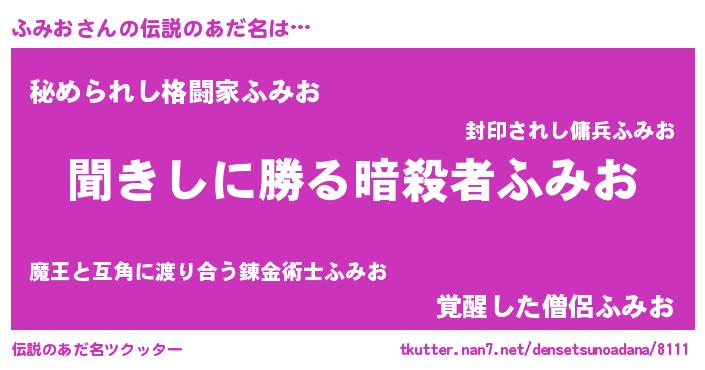 | 意味不明あだ名 | 『永久保存ふみお』『自称ふみお』 |
