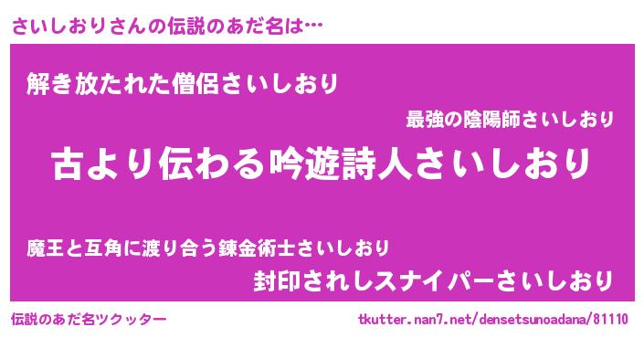 | ヘコむあだ名 | 『さいしおり(小並感)』『さい太郎』 |