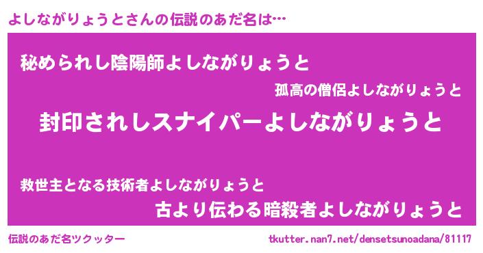 | ヒーロー風カッコイイあだ名 | 『スーパーヨシナガリョウト』 |