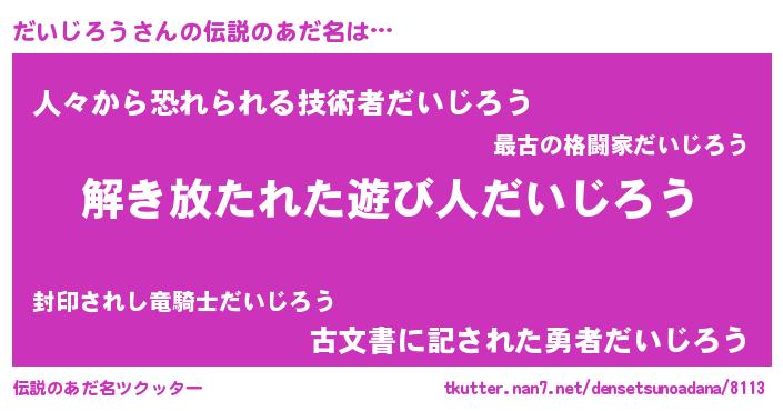 | 男性向けラノベタイトル風あだ名 | 『この素晴らしい世界にだいじろうを!』 |