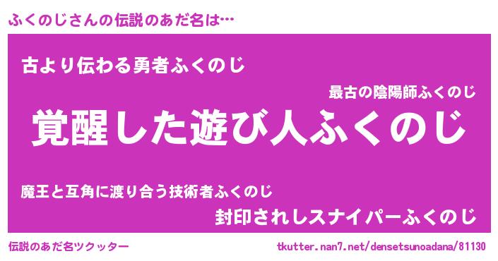| ヒーロー風カッコイイあだ名 | 『炎刃騎士フク』『ネオフクノジ』 |