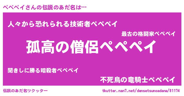 | ヒーロー風カッコイイあだ名 | 『黄金騎士ペペ』『天空の使者ペペペイ』 |