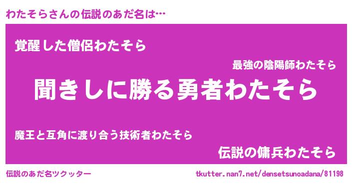 | ヒーロー風カッコイイあだ名 | 『仮面ワタダー』『ネオワタソラ』 |