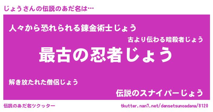 | ヒーロー風カッコイイあだ名 | 『仮面ジョダー』『超時空戦士ジョウ』 |